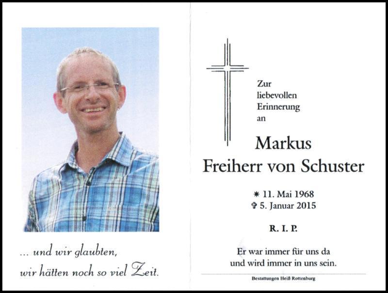 Besucher:Unsere Gemeinschaften die Kath. Gehörlosengemeinde Landshut,der Ortsverband der Gehörlosen Landshut und der Gehörlosen-Sportverein Landshut haben durch den Tod unseren lieben Markusvon Schuster einen sehr schweren Verlust erlitten. Markus war ein lang jähriges treues Mitglied in unserenverschiedenen Gemeinschaften. Er unterstützte uns sehr, indem erbei Veranstaltungen fotografierte, unsere Homepage betreut unddas Vereinsjournal gestaltet hat. Im Namen aller genanntenGemeinschaften danken wir ihm von ganzem Herzen für das großeEngagement. Wir werden ihn niemals vergessen und ihn stets einehrendes Gedenken bewahren.