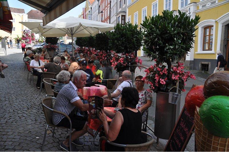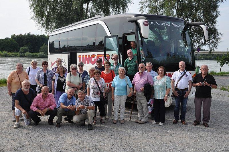 Besucher:Es ist schon eine lange Tradition, dass die Senioren des Bezirks Niederbayernjedes Jahr eine oder mehrere Tagesfahrten unternehmen. So war es seit AlfredWeisner (Deggendorf) die Gründung der niederbayerischen Seniorenorgtanisierte und zahlreiche Kulturelle und bildungspolitische Fahrtenorganisierte. Der Nachfolger Johann Obermeier (Straubing), welcher leider nurwenige Jahre im Amt sein konnte, führte die Tradition weiter. Nach dem Todevon Johann Obermeier übernahm Gottfried Paulus die Leitung und führte dieTradition der Tagesfahrten weiter.So auch in diesem Jahr, wo das Reiseziel Schärding in Oberösterreich lag. DaSchärding dieses Jahr sein 700 jähriges Stadtfest feierte und als Barockstadteinige Sehenswürdigkeiten hatte, und insbesondere die Möglichkeit bot, eineSchiffahrt durch die wildromantische Natur und Landschaft am unteren Inn,zwischen der bezaubernden Barockstadt Schärding und der DreiflüssestadtPassau zu unternehmen, war es ein ansprechendes Tagesziel.Der Organisator Gottfried Paulus musste schon einige Logistische Problemklären bis er alles in trockenen Tüchern hatte, damit die Fahrt ohne Problemedurchgeführt werden konnte. Doch ob das Wetter mitspielen würde, war diegroße Frage. Kurz vor dem Start in Landshut begann es zu regnen, also musstenoch schnell der Regenschirm gesucht und mitgenommen werden. Doch dieRegenwolken verzogen sich im Laufe der Fahrt und bis zur Rückfahrt wurdedass Wetter zusehends besser und sonniger. Der Busfahrer Werner vom Verkehrsunternehmen Unger, Vatersdorf, sammeltean den Treffpunkten Landshut, Plattling und Passau alle Teilnehmer ein und fuhruns dann ab Passau über den Maria-Hilfsberg auf einer landschaftlich reizvollenaber etwas schmaler und kurviger Strecke zum Reiseziel in Schärding, wo unsschon einige Reiseteilnehmer, welche mit dem Auto anreisten erwarteten.Pünktlich wie eine Schweizer Uhr schaffte der Busfahrer die Ankunft, wo wirsogleich im Brauereigasthof Baumgartner-Stadtwirt das Mittagessen ohne langeWartezeit einnehmen konnten, da dies unser Chef der Gottfried vorbestellt hatte.Nach dem Mittagessen konnte man noch einen kurzen Verdauungsspaziergangzur Schiffsanlegestelle machen, wo um 13.40 Uhr das einchecken begann.Unsere Seniorengruppe hatte die erste Reihe reserviert und somit beste Blickeauf den Fluss und die Umgebung.Pünktlich um 14 Uhr startete unser Schiff unter Käpitän Manfred, (mit 150Personen an Bord) die zweistündige Fahrt auf dem Inn zur DreiflüssestadtPassau und zurück.Dass die gehörlosen Teilnehmer auch die Informationen des Käpitäns zu deneinzelnen Sehenswürdigkeiten und Orten vermittelt bekamen, dafür sorgteLarrissa, die Studentin der Gebärden-Dolmetscherausbildung an der FHSLandshut, welche hier eine kleine Praktika machen konnte und ihre Sache gut machte. Es ist aber zu erwähnen, dass es Kritik gab, von einem, welcherentfernt von der Dolmetscherin saß und meinte dass zwei oder mehrDolmetscherinnen erforderlich wären. Aber in der Nähe der Dolmetscherinnenwaren ausreichend Plätze frei, warum sich weitab ins Eck sitzen undBeschwerde führen?Die Schiffsfahrt führte vorbei am Schloss Neuhaus, der Vogel- und Biberinselund der Bernascheck-Insel. Weiter der früheren Benediktinerabtei SchlossVornbach und dem Inndurchbruch. Vorbei an der Wehrburg Wernstein (11Jahrhundert) der historischen Mariensäule und die sagenumwobene Neuburg.Kurz vor Passau passierten wir noch das Schiffskreuz, welche an die vielenSchiffsunglücke in alter Zeit erinnerte, dann ging es wieder zurück nachSchärding.Nach der Schiffsfahrt konnten wir noch zu einer gemütlichen Sitzweil in eimenitalienischen Straßencafe bei Eis, Cappuccino und sonstigen Erfrischungeneinkehren, wo eine der Bedienungen uns sogar ein wenig mit Gebärdenspracheüberraschte.Gegen 17:30 Uhr nahmen wir dann Abschied aus dem durchaus schönemStädtchen Schärding mit seiner malerisch barocken Innenstadt und unserBusfahrer Werner brachte uns alle Wohlbehalten zu den einzelnenAusstiegsorten.Für alle Teilnehmer war die Tagesfahrt sicherlich ein schönes Erlebnis, zumalder Bus bei den einzelnen Treffpunkten pünktlich war, wir das Mittagessen infreundlich, familiärem Ambiente einnehmen konnten, für die SchiffsfahrtErmäßigung erhielten und uns vor allem das Wetter hold war. Ob die Seniorenfahrten weitergeführt werden, dürfte eine Interessante Fragesein, zumal es bis Jahresende sicherlich ein altersbedingtes Revierement in derBezirks-Vorstandschaft geben dürfte.Diese Fahrt kann man auch anderen Gehörlosenvereinen zur Nachahmungempfehlen. (Gottfried Paulus)Klicken Sie bitte auf jedes Bild, um es zu vergrößern!